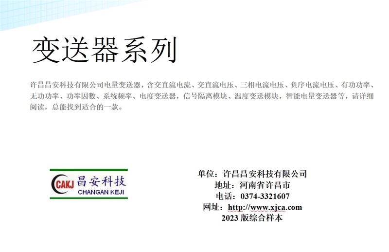 許昌昌安科技有限公司是專業(yè)生產智能電力測控設備及自動化裝置的高科技公司。產品包括電力系統微機中央信號報警裝置,電纜絕緣在線監(jiān)測裝置,相地保護裝置,電流、電壓監(jiān)視繼電器,失壓斷流計時儀,多功能電力儀表、電量變送器、溫濕度控制器、智能操控裝置等產品,形成了多系列為電力系統成套企業(yè)配套的產品及服務。 公司注重新技術新產品的開發(fā),同時全面貫徹ISO9001質量保證體系。 公司前身為許昌市儀器儀表研究所。多年以來,公司致力于測控儀器儀表的開發(fā)生產,積累了豐富的為電力用戶服務的經驗及產品,形成了一個充滿活力,積極進取的團隊。